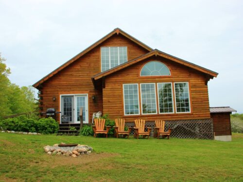 This 1400 square foot two story cabin is a brand new with wheelchair access. It has 2 bedrooms plus a loft and sleeps 7-9 people. Sun filled windows give an amazing warm view of beautiful Kashwakamak Lake.